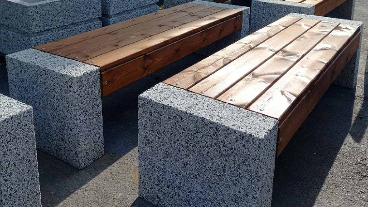 «Классика» бетонная скамья имеет несколько видов покрытия: фактурные с галькой или мрамором и полированные. После сборки она обрабатывается специальной водоотталкивающей пропиткой.